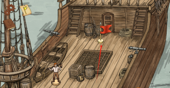 3、完成第一章的内容后,船上会出现一个旗子,点击船上的旗子;