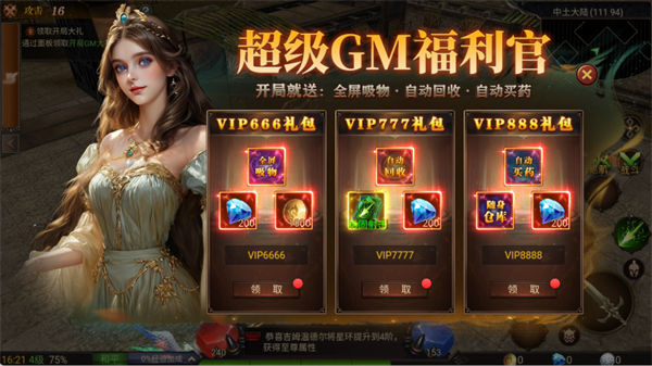 斗圣传说官方正版游戏开局即可免费领取VIP666/777/888三大特权礼包,解锁全屏吸物、自动回收、自动购买药品等核心懒人特权,同时还将获得海量钻石和金币,让你轻松迈出游戏的第一步。