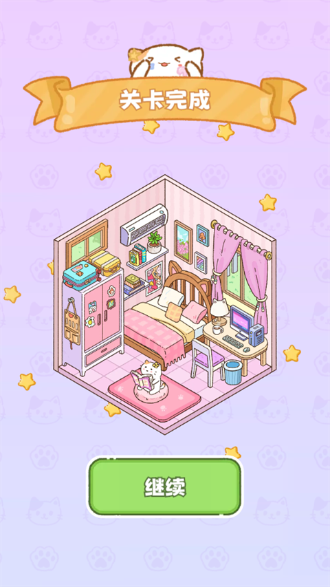 5、自由DIY装饰:通关后可自由布置房间,添加家具与装饰,打造独一无二的可爱场景。