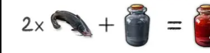 如果说绷带可以通过随处可获取的棉花来进行制作升级的话,那么止血剂就需要更麻烦一些。毕竟玩家们不可能自己产出止血剂,需要玩家们在河边钓上两条新鲜的鲈鱼,再用两条新鲜的鲶鱼上的胶状粘液,加上一个收集的瓶子消毒罐装后便可以获得止血剂。