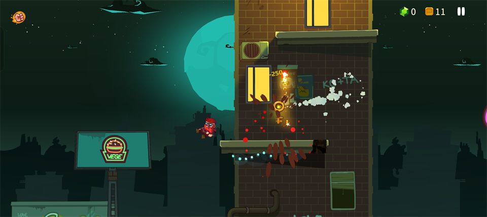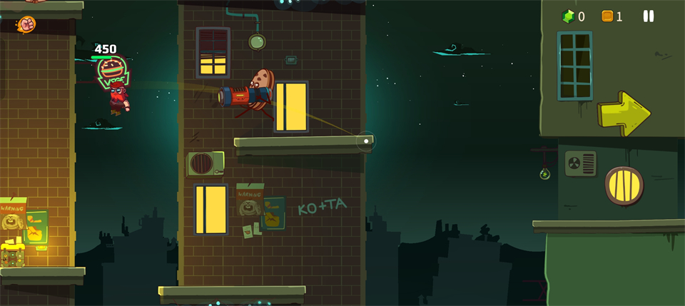 1、 灵活移动:通过滑动屏幕控制角色奔跑与跳跃,利用墙壁反弹与空中二段跳躲避密集弹幕与地面尖刺陷阱。