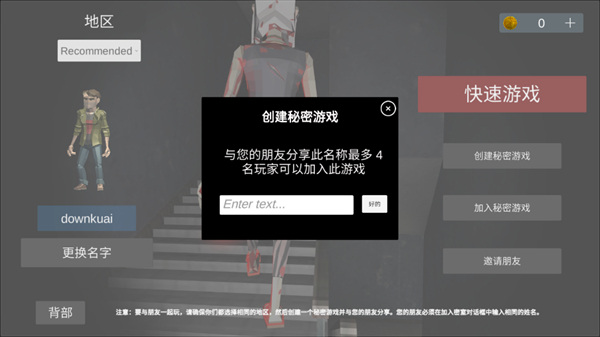 4、不过注意要确保右上的地区要和联机的人相同,然后在密室的对话框中输入相同的房间名称便可以进去了!