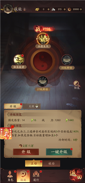 玩家可使用道元丹升级技能,提升技能伤害值以及战力。