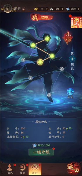 升级道行可以提升角色的生命、攻击、破甲等属性。