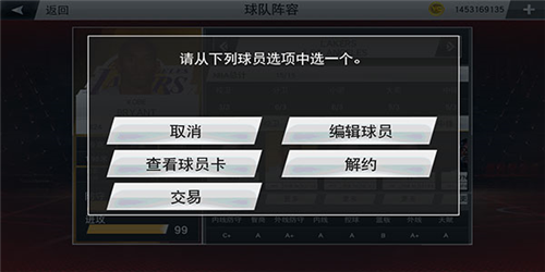 3、进入管理阵容,我们可以在右侧看到球员列表。再点击右侧球员头像下的【更多】按钮;