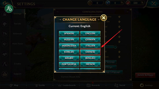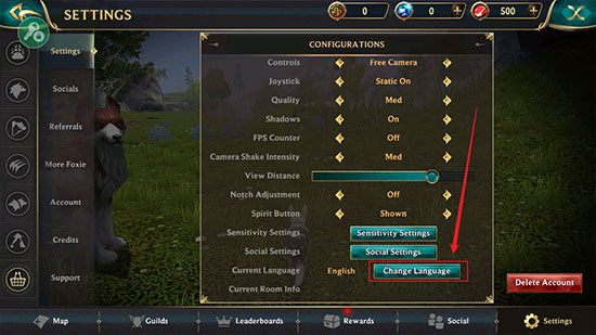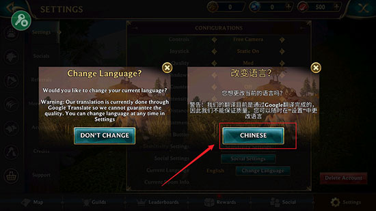 1、首先狼传说家园与爱心最新版后,默认是英文的,我们可以设置成中文的,点击【Change Language】;