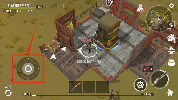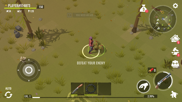 1、 自由移动:通过虚拟摇杆控制角色在开放世界中自由探索,靠近资源点点击采集按钮获取木材、石材等基础材料。