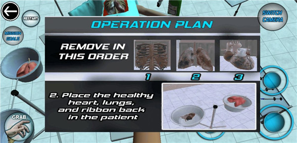 5、这里还可以查看游戏玩法,需要将健康的心脏、肺等器官放回病人体内;