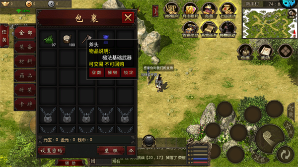 2、掉落或领取的装备可以在背包中穿戴。