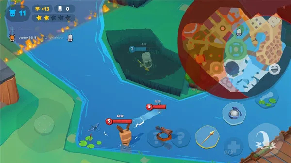 类似大逃杀的缩圈玩法,触碰到火圈会持续掉血,只能不断往圈中心方向移动。
