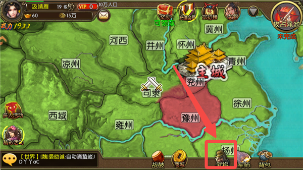 1、进入三国世界0.1折手游,先点击【主城】。