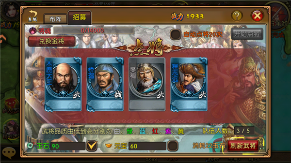 3、玩家可选择心仪的武将进行招募。