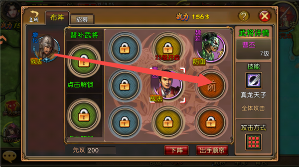 6、根据武将特点配置合适的阵型,将武将移至相应位置即可。