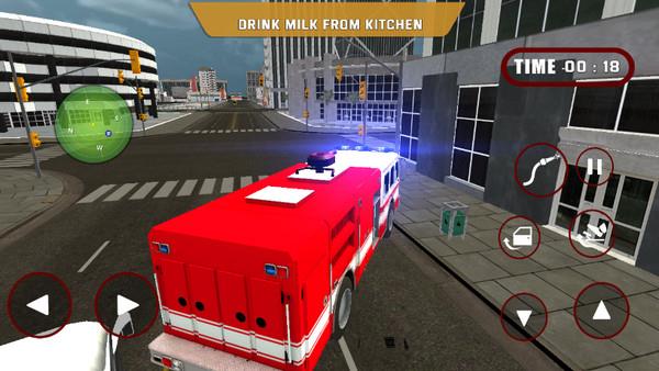 8、上车之后就可以在城市中执行消防任务了,现在终于替换到消防员叔叔的不容易了吧!大家喜欢的话自己玩吧。