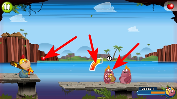 3.瞄准结束后点击发射按钮,使樱桃命中怪物以完成攻击动作。
