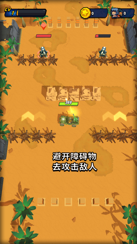 2、穿越复杂地形,躲避敌方炮火并攻击敌人。