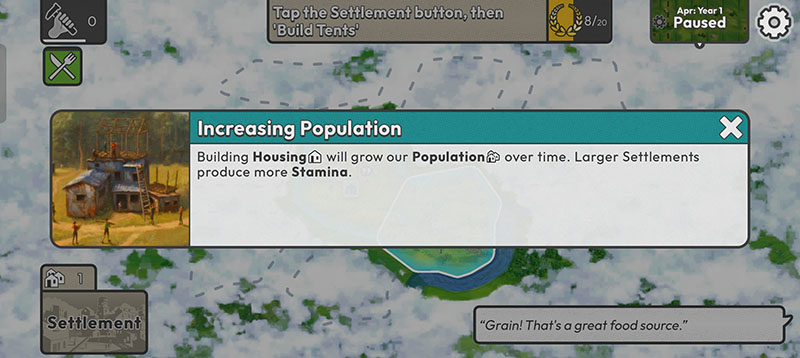 4、随着时间的推移,建造住房将增加我们的人口。更大的定居点产生更多的体力。