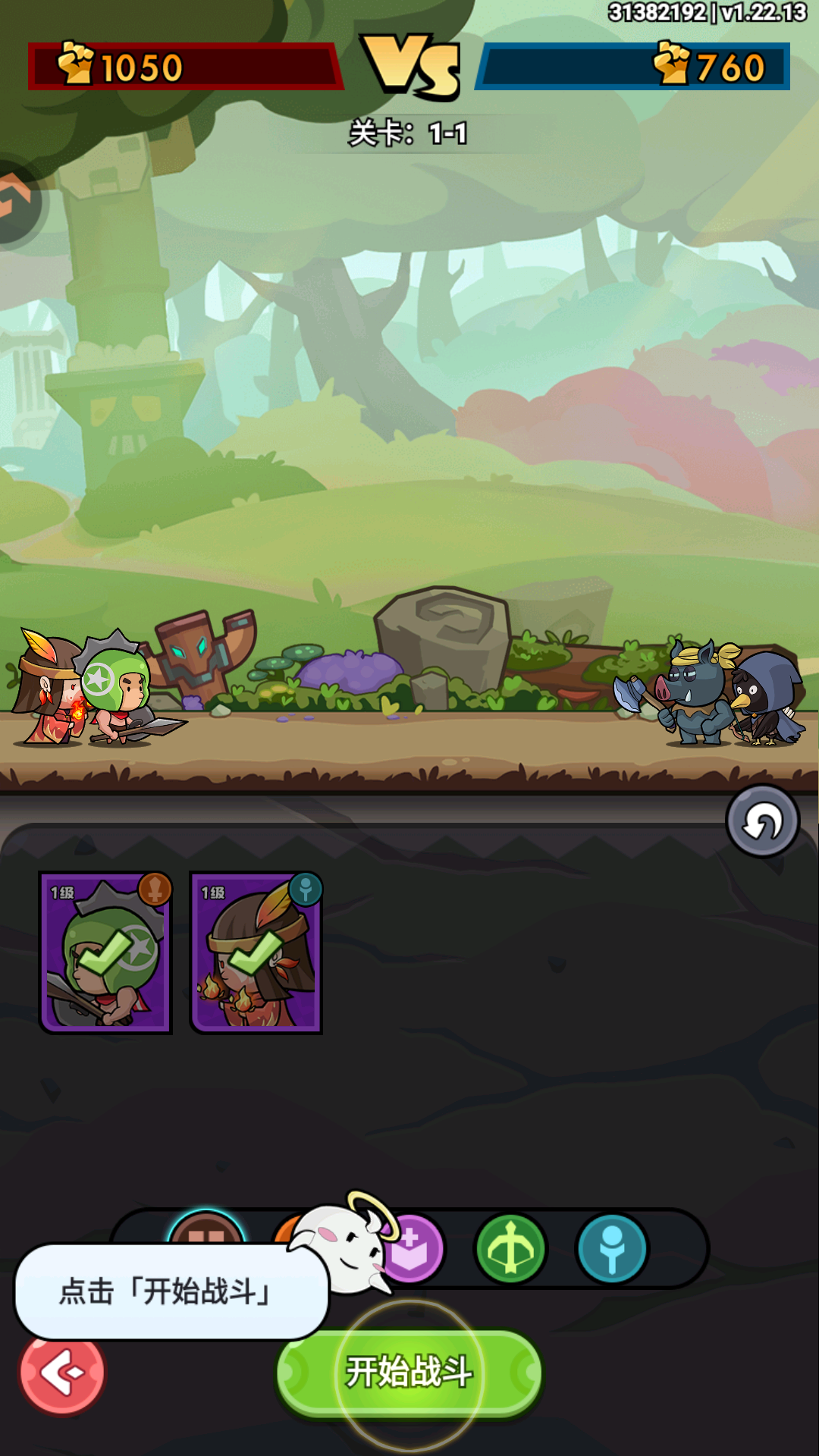1、上阵自己的武将,点击开始游戏。