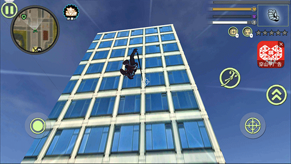 1、 钩爪飞荡:利用可伸缩的强力钩爪在高楼大厦间快速摆荡,体验凌空穿越的快感,精准控制力度以避开障碍物并节省体力消耗。