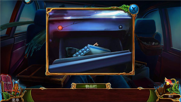 3、利用指甲锉打开副驾驶前面的盖子,找到宝箱钥匙;
