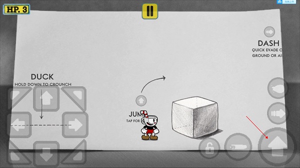 2、下图红框的区域都是跳跃的按钮区,按这一块都能让角色跳跃