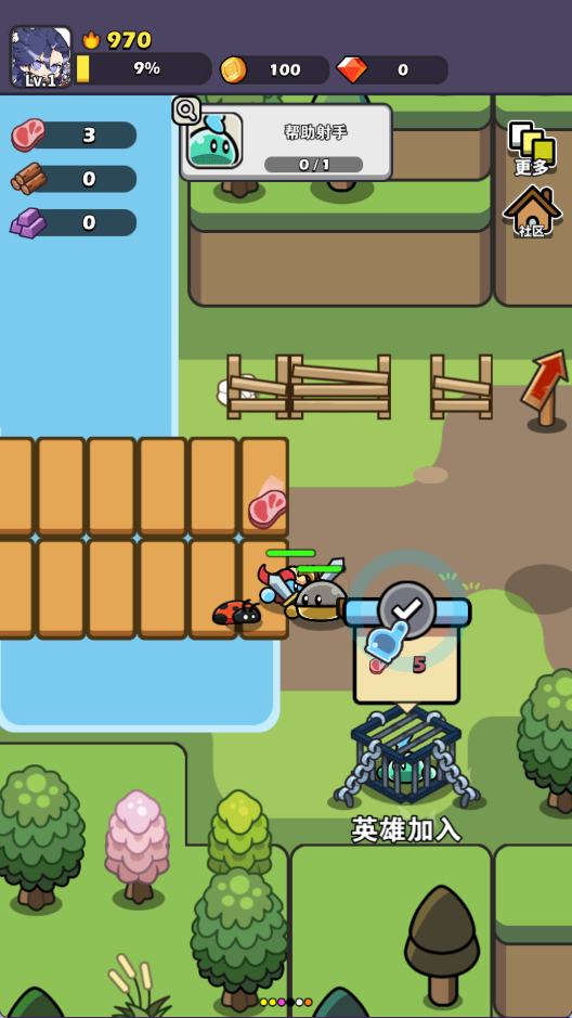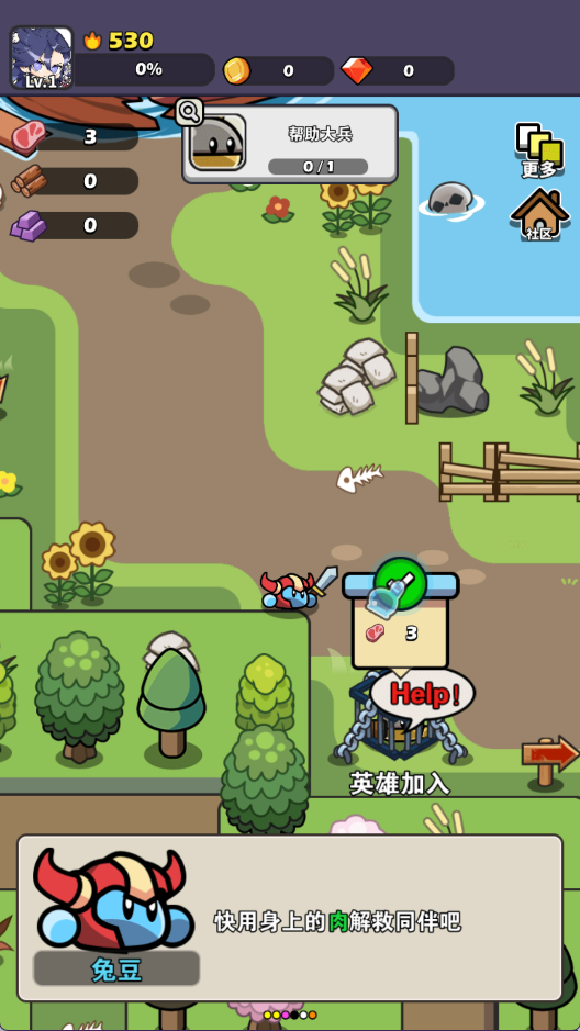 4、击败怪物会获得肉,使用肉来解救其他同伴