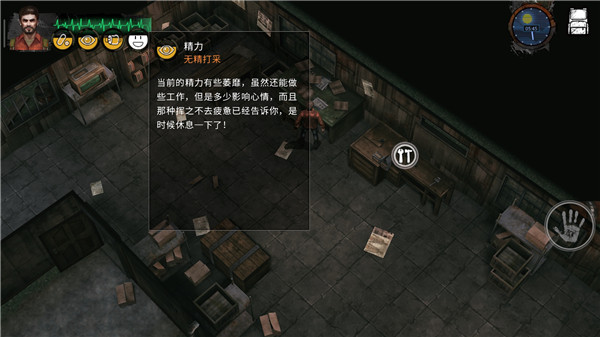 3、精力:精力为零时玩家累死。精力在非休息时间自动流失,在床上休息则可以补充精力,床越好需要的休息时间越短,剩下的时间则可以制造更多东西。