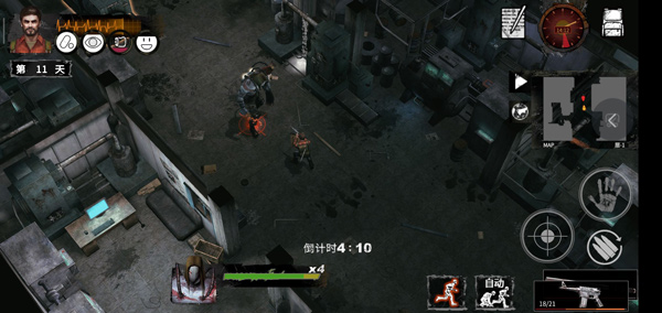 2、体力:体力为零时玩家战死。体力只有被攻击时才会流失,脱离战斗则自恢复。制造的攻击道具则可以更快击杀僵尸,也间接影响体力流失。
