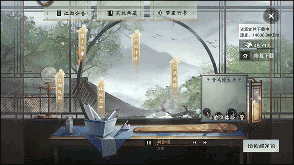 1、运行游戏后,在标题界面选择并点击“踏入江湖”的选项;