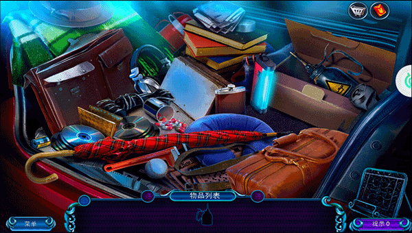 7、后备箱有很多东西,玩家需要在这里找到手套、灭火器、指纹、手电筒、文件夹、眼镜油炸圈饼、放大镜、相机、腕表、绳子、鬼魂物品,最高效的方法是随便乱点,因为没有错误惩罚,所以这种方法反而是最快的;