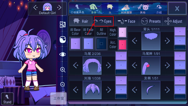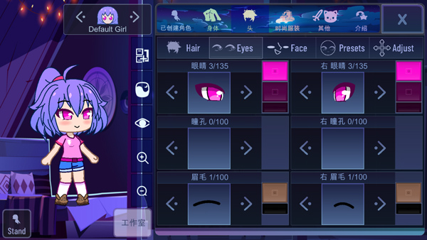 3、玩家可以根据自己喜好来调整角色眼睛,以及瞳孔、眉毛等;