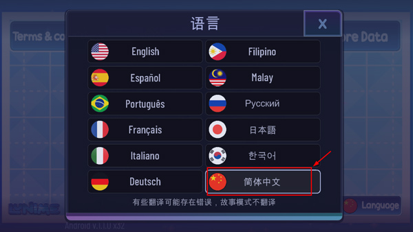 3、最后点击屏幕开始,进入游戏后就可以看到语言调成简体中文了。