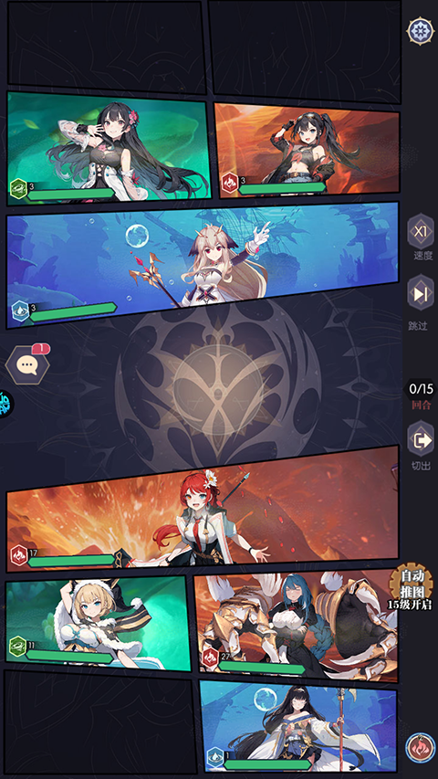 3、放置卡牌,策略搭配:丰富的卡牌系统,玩家可以自由搭配角色阵容,制定策略应对各种挑战。
