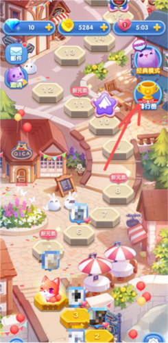 1、进入游戏的首页就可以看到如下的关卡地图,要从第一关也是最简单的一关开始玩起。点击关卡就能进入现有的关卡游戏界面,每次闯关都需要消耗右上角的爱心,只有通关才能将爱心赚回来,如果失败了就会扣除爱心。