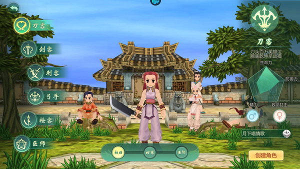 1、刀客,剑士,枪客,医师,弓手、刺客六大经典职业;