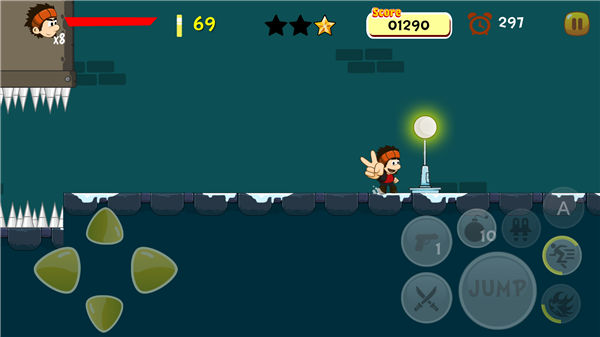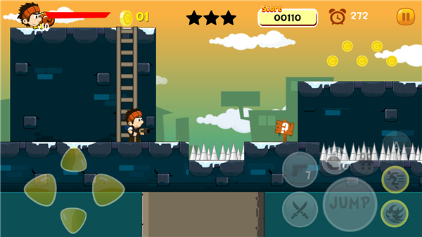 3、核心跑酷操作体验:将全程操控主角,在充满危险的复杂地形中展开冒险。过程中需要灵活应对断崖、尖刺、移动平台等各类障碍物,通过精准跳跃、主动攻击、巧妙躲避的组合操作,一边突破地形的限制,一边击退或躲开沿途敌人的围堵,在惊险刺激的操作中推进闯关进程。
