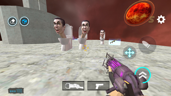 马桶人太空沙盒是一款自由度极高的沙盒射击类游戏,英文名字叫做:Sandbox In Space。进入游戏,玩家将以第一人称的视角参与各种各样的射击行动,并能够在多款场景中自由的进行选择,选择以后,场景中就会出现许多奇怪的生物,包括:马桶人、圆锯人、弹头人、寄生物、外星飞碟等,而你需要的就是利用手中的武器对其进行射击,并会随着时间的推移变的越来越多,你需要在你血量见底前,尽可能的击杀更多。游戏中的MOD编辑器,可以让你自行的塑造各种各样的怪物。