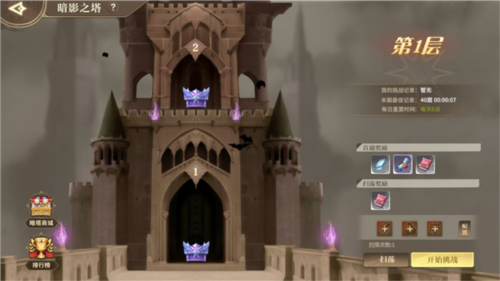 每日可以【扫荡】已通关的所有楼层来获取【扫荡奖励】,提升贵族等级还可以额外获得扫荡暗影之塔的次数。