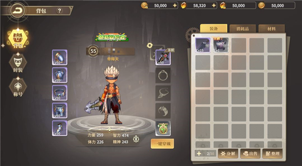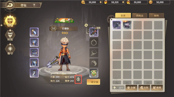 当背包中存储了不需要的装备,我们可以通过下方装备品质勾选,进行批量分解和出售,获取货币和强化材料。