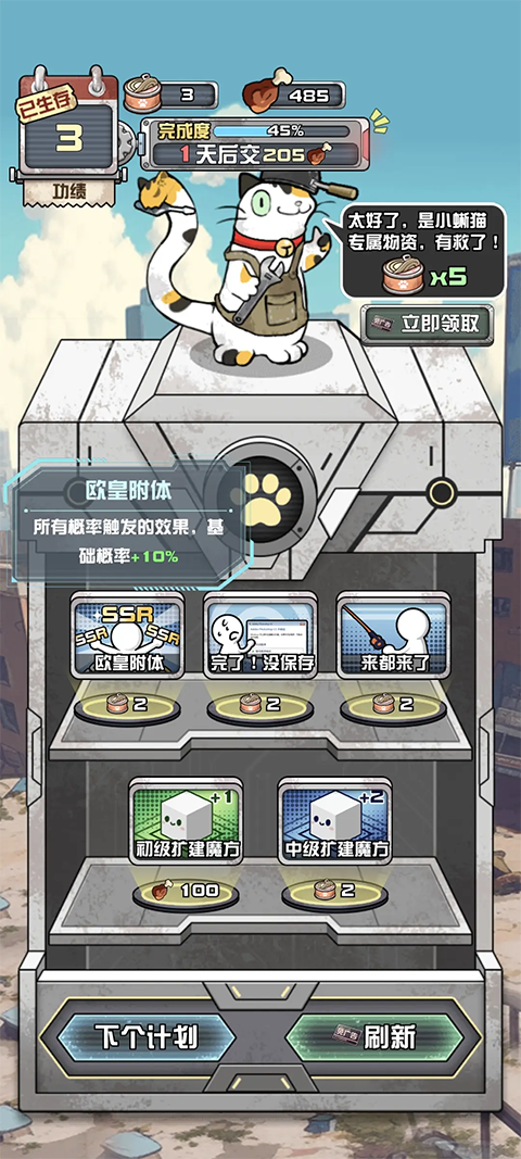 4、完成生存计划:系统定期发布如“收集指定数量鸡腿”等目标,达成后可获得奖励并推进主线剧情。