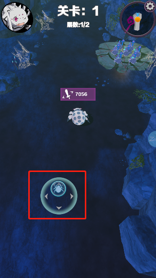 2、战斗中玩家通过点触屏幕唤出移动遥感操作小蜘蛛进行移动